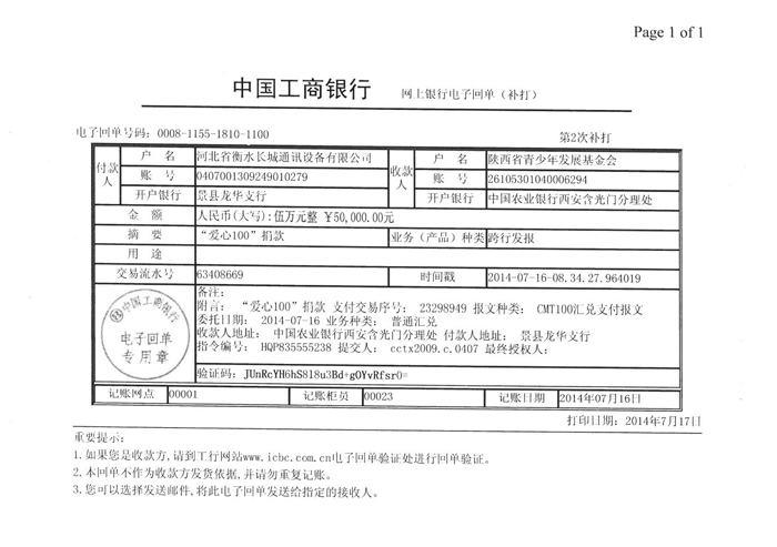 長城鑫瑞鑫通訊設備集團有限公司_每年捐款資助陜西省“愛心100”助學行動,每年捐款5萬元整