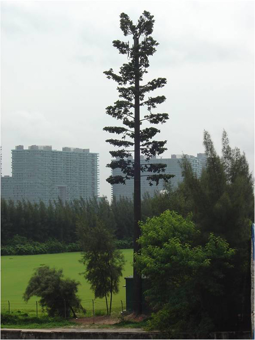 在單管通信塔的基礎上,外飾仿自然樹木材料,其外形逼真、美觀,與周圍環境完美融合;